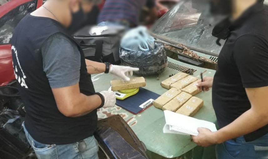 En el marco de una investigación por hechos delictivos ocurridos en Puerto Iguazú, y por orden del juzgado de Instrucción Nº3 de Puerto Iguazú, ayer los investigadores de la Unidad Regional V allanaron una casa del barrio Nuevo Iguazú. En el interior de la morada, precisamente en una habitación se secuestraron unos 300 gramos de marihuana, de la misma forma en el patio trasero de la propiedad, donde están depositados al menos 8 vehículos abandonados, en uno de los rodados se incautaron 400 gramos y en el baúl de otro una bolsa con 4 kilos de cogollos de marihuana. Para finalizar, en una caja de cartón se encontraron 7 panes de la misma droga, el estupefaciente fue corroborado por personal idóneo de la División Drogas Peligrosas de Puerto Iguazú, arrojando un peso total de 7 kilos y 900 gramos. También en el lugar, terminaron detenidos un hombre de 45 años, quien sería el propietario de la casa y otro joven de 19 años en averiguación de sus antecedentes.