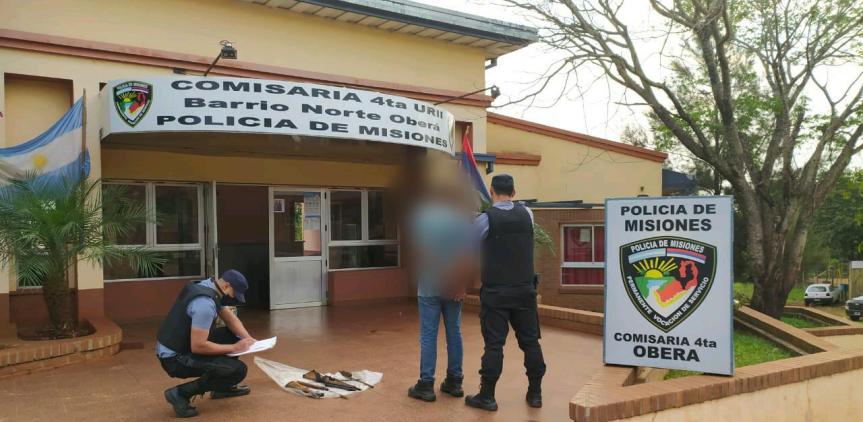 OBERÁ. Hoy a las 16:50, efectivos de la seccional Cuarta detuvieron en el barrio Picada Oasis a Roberto D. S. de 40 años, acusado de agredir a su pareja de 26 y amenazarla de muerte con un arma de fuego.