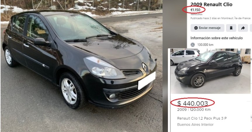 Un Renault Clio en Francia cotiza alrededor de 1.200 euros, accesible con un mes de salario mínimo en ese país.