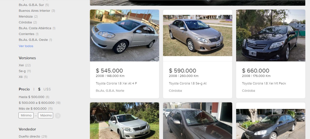 Toyota Corolla 2008 en Argentina cotizan por encima de 500 mil pesos, equivalen a más de 30 salarios mínimos.