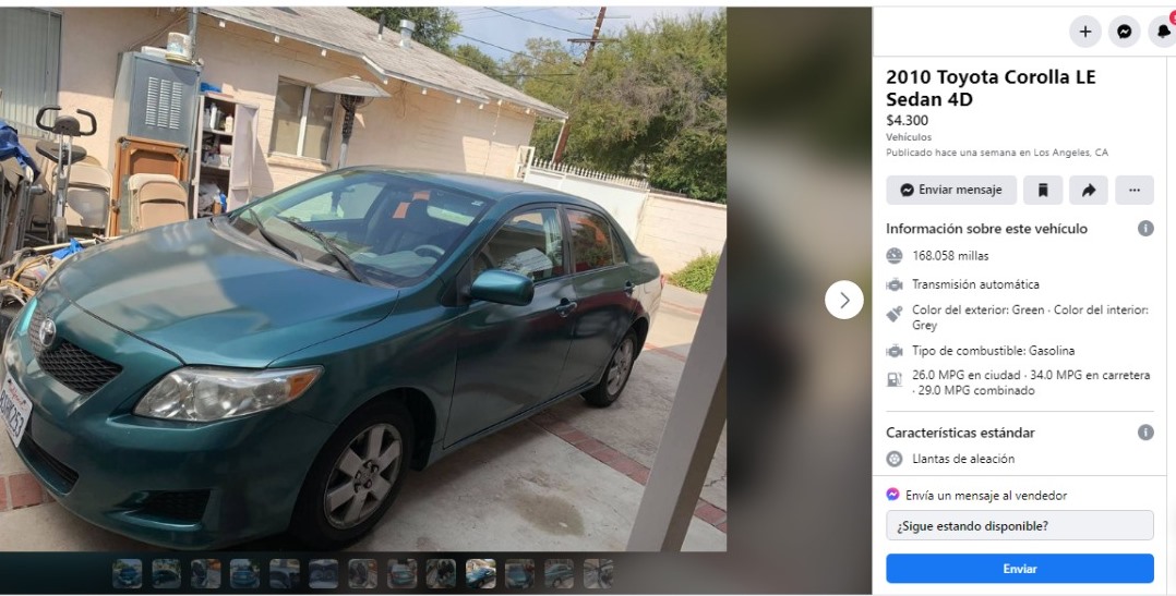 Toyota Corolla 2010 en Estados Unidos cotizan desde 4 mil dólares, equivalen a 2,5 salarios mínimos.