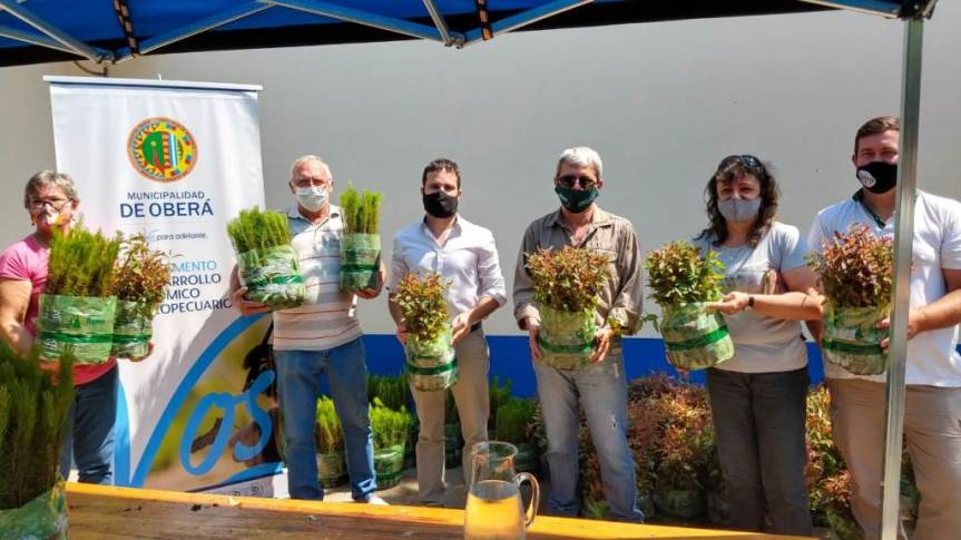 El pasado jueves en el Departamento de Desarrollo Económico y Agropecuario del Gobierno de la Ciudad de Oberá representado por el Lic. Diego Capolupo conjuntamente con el Ing. Julio Recalde integrante de la Subsecretaría de Forestación, se hizo entrega de los plantines de pino y eucalipto solicitados por 13 Productores del Departamento de Oberá.