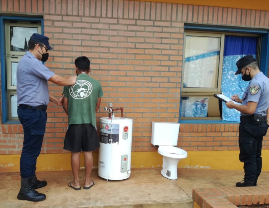La investigación del caso se inició a partir de la denuncia de Marco A. de 42 años, quien relató la sustracción de un inodoro con su respectiva mochila y un termotanque. Entonces, efectivos de la Sección Mini Brigada de San Pedro iniciaron varios operativos de búsqueda de estos objetos que fueron hallados en los lugares citados.