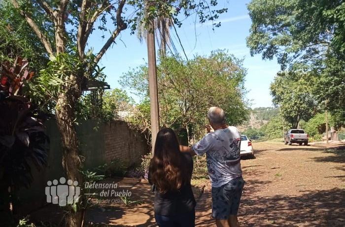 En el marco del Programa «La Defensoría en tu Barrio», Patricia Nittmann estuvo en el Barrio Villa Falk, dialogando con un vecino quien días atrás se comunicó con la Defensoría, a los fines de iniciar su reclamo por la poda indiscriminada (por parte de la Cooperativa Eléctrica Limitada de Oberá) de varias especies arbóreas de su vereda.