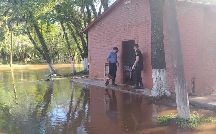 Pese al cese de las lluvias en la zona, esta tarde el arroyo Itacaruaré continuó en creciente, desbordándose de su cauce natural, llegando a la casa del cuidador del predio donde se realiza anualmente el festival provincial de las carpas. Rápidamente la patrulla de la Comisaría local evacuaron a la pareja y lograron retirar sus muebles y demás pertenencias de los damnificados antes que el agua los dañara o arrastrase. El matrimonio fue alojado en una dependencia municipal donde seguirán siendo asistidos por la Policía y el municipio hasta tanto puedan regresar a la vivienda.