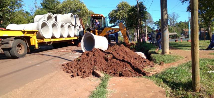 Colocaron tubos en calle Río Cuarto y Roca, y continúan con el cordón cuneta en avenida Gendarmería