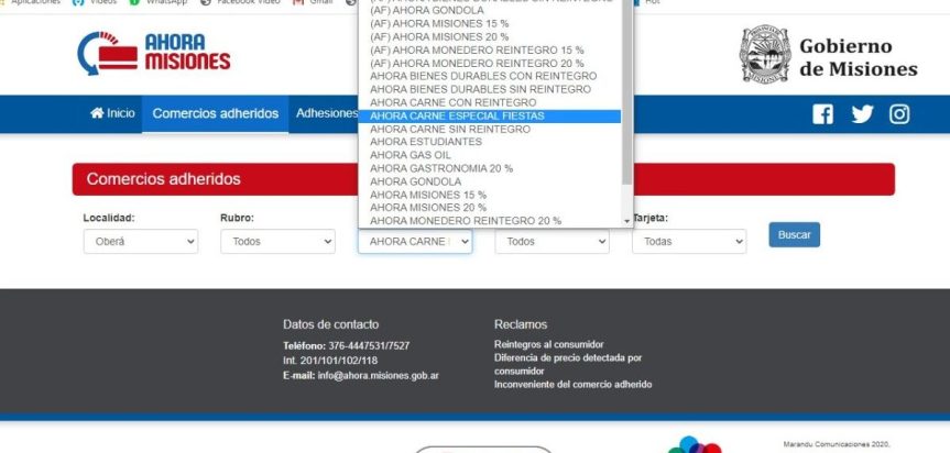 Los locales en Oberá que figuran adheridos corresponden al programa «Ahora Carne SIN reintegro».