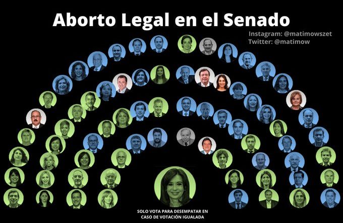 El Senado aprobó esta madrugada la ley de Interrupción Voluntaria del Embarazo, con 38 votos a favor, 29 en contra y una abstención. De esta manera, el aborto es legal, seguro y gratuito en la Argentina. El proyecto, que fue rechazado en 2018 durante el gobierno de Mauricio Macri, había sido una de las promesas de campaña del presidente Alberto Fernández. El debate se extendió por unas doce horas.