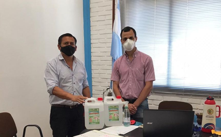 Desde el Instituto de Fomento Agropecuario e Industrial (IFAI), se realizó la entrega de 25 litros alcohol en gel y 25 litros alcohol sanitizante al Gobierno de la Ciudad de Oberá.