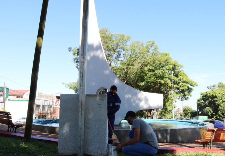 Agentes de la Dirección de Obras y Servicios Públicos, se encuentran trabajando en pazoleta Alemania llevando adelante tareas de pintura, desmalezamiento, limpieza e instalaciones de luminarias. En plaza San Martín realizan mantenimientos de los bancos y en Plaza Mbororé.
