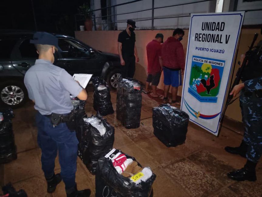 Se trata de 11 bultos que contenían zapatillas y ojotas de origen extranjero sin el correspondiente aval aduanero y que fueron secuestrados pasadas las 21.30 hs del lunes., en la zona de las 600 hectáreas, por efectivos de la División Infantería y de la comisaría 1ra de Iguazú cuando realizaban trabajos preventivos.
