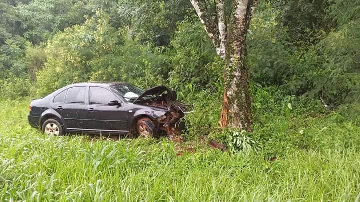 Este jueves Bomberos de Iguazú recibieron una denuncia de un accidente vehicular en la Ruta Nacional 12 a la altura 1600. Rápidamente se dirigieron al lugar constatando que un vehículo Volkswagen Bora perdió el control y terminó colisionando contra un árbol.