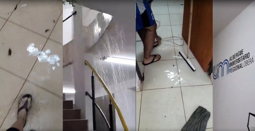 Pero son tales las deficiencias estructurales que cada vez que llueve, se inundan las habitaciones y el hall. Así lo manifestaron y filmaron los alumnos que residen en el lugar este domingo, tras las intensas lluvias de la tarde noche.