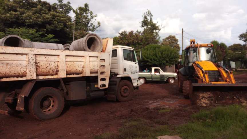 En Barrio Norte, la Dirección de Obras y Servicios Públicos se encuentra llevando adelantes tareas de entubamiento a las márgenes del arroyo Mbotaby.