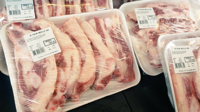 Uno de los que disparó la polémica en Twitter fue el cantante de cumbia y abierto opositor al Gobierno, El Dipy. Las fotos que publicó muestran cortes de falda de novillo, de asado y carne picada en los que hay más grasa que carne.
