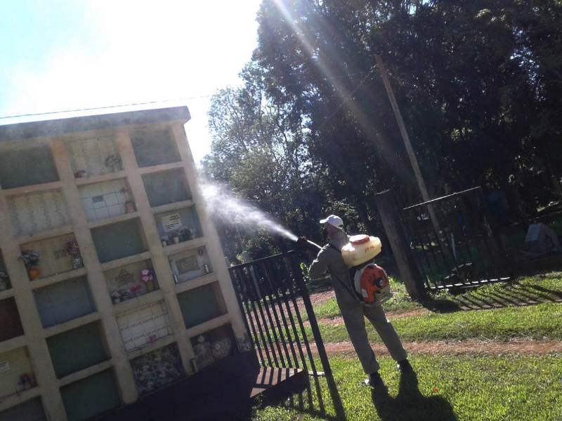 Se llevaron a cabo fumigaciones espaciales en distintos establecimientos públicos y privados en la ciudad. Se trabajo durante la semana pasada en el Cementerio La Piedad, el cementerio Sueco, en el Centro de Ciego, el edificio de la Murga del Monte y en las instalaciones de la sede de la Comisión Organizadora de la Feria del Libro.