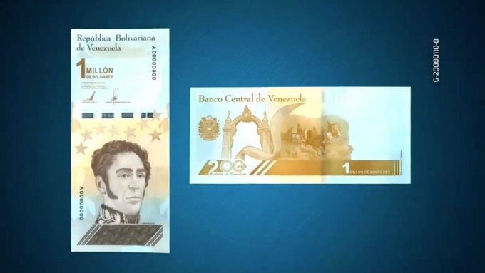 La cuenta de Twitter del Banco Central venezolano anunció el lanzamiento de tres nuevos billetes (de 200.000, 500.000 y 1 millón de bolívares) «para cumplir con los requerimientos de la economía nacional».