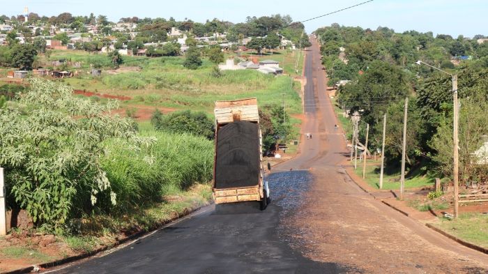 El Gobierno de la Ciudad de Oberá realiza trabajos de pavimentación en la arteria principal que brinda acceso a varios barrios, ente ellos Cien Hectáreas, Villa Stemberg, San Miguel y San José.