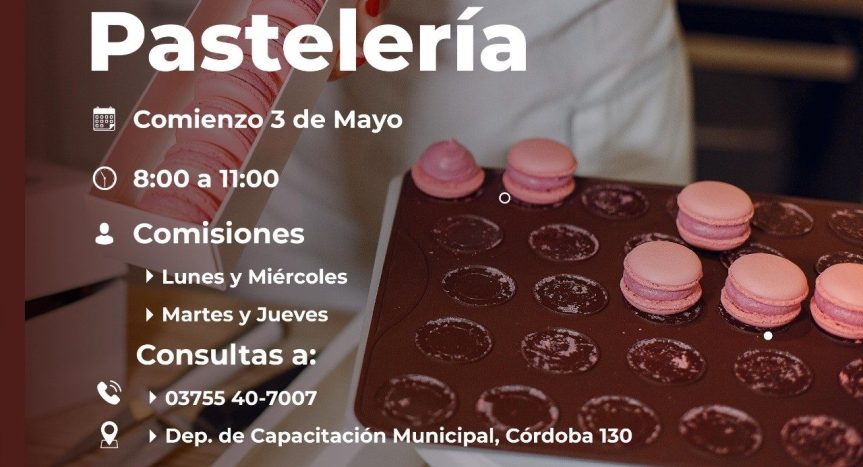 El próximo lunes 3 de mayo inicia el taller de pastelería que se dictarán técnicas básicas de pastelería, armado de tortas, tipos de rellenos, tartas, tipos de masas.