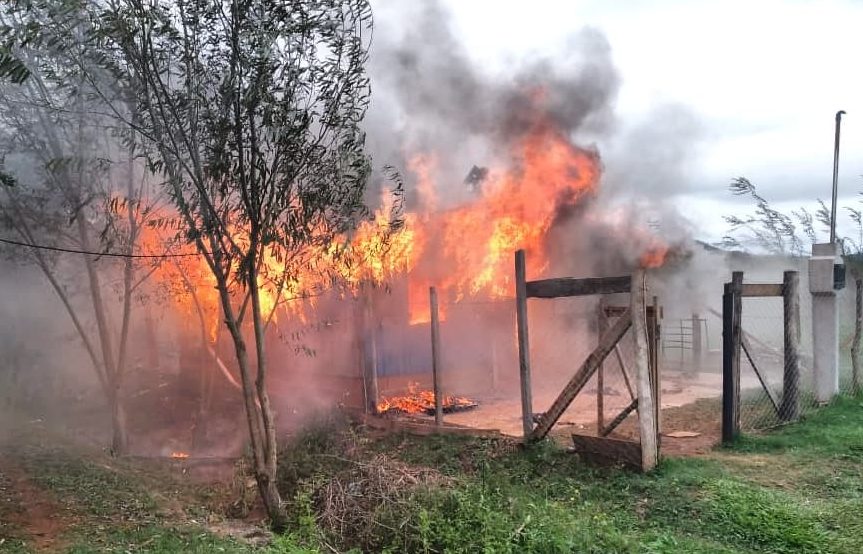 El foco ígneo se registró a las 11:00 hs de este domingo en una vivienda ubicada en el Barrio San Juan de esa localidad. Pese al trabajo llevado a cabo por bomberos voluntarios, policías y vecinos, las llamas consumieron la estructura de madera de cinco por ocho metros.