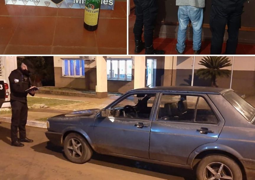 Anoche efectivos de la Comisaría local detuvieron a un hombre de 39 años, además secuestraron un vehículo Volkswagen Sedan y una botella de una bebida alcohólica.