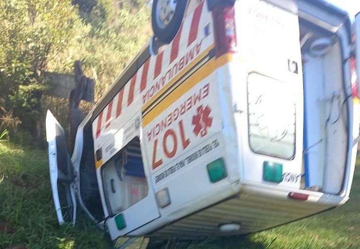 Ocurrió en horas del mediodía de este lunes. Una ambulancia que trasladaba a una mujer embarazada con rotura de bolsa desde Dos de Mayo, perdió el control en una curva de la Ruta Nacional n°12 a la altura de El Alcázar, volcando al costado de la arteria nacional en el acceso a la localidad, quedando en posición invertida.