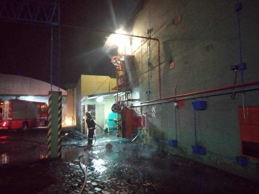 Al llegar y constatar la situación, trabajaron de forma conjunta para sofocar las llamas que afectó el sector de cintas de secado.