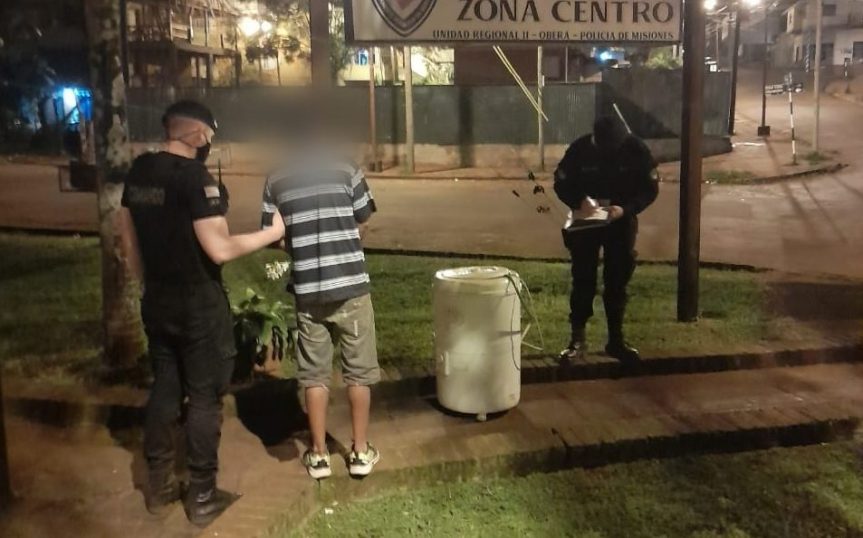 La policía fue alertada través de un llamado telefónico que en la calle Iguazú observaron a un joven con elementos de dudosa precedencia.