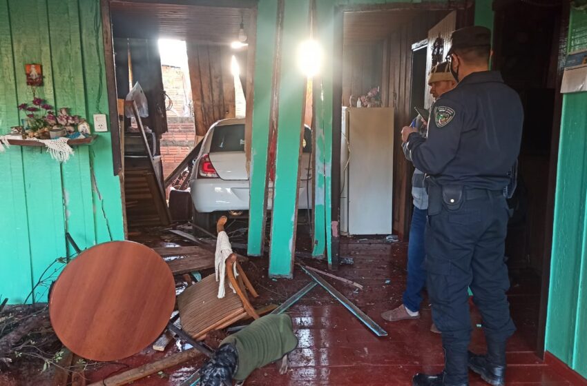 Una mujer que, por cuestiones que se tratan de establecer, atravesó la vivienda de lado a lado con el auto, tras perder el control.