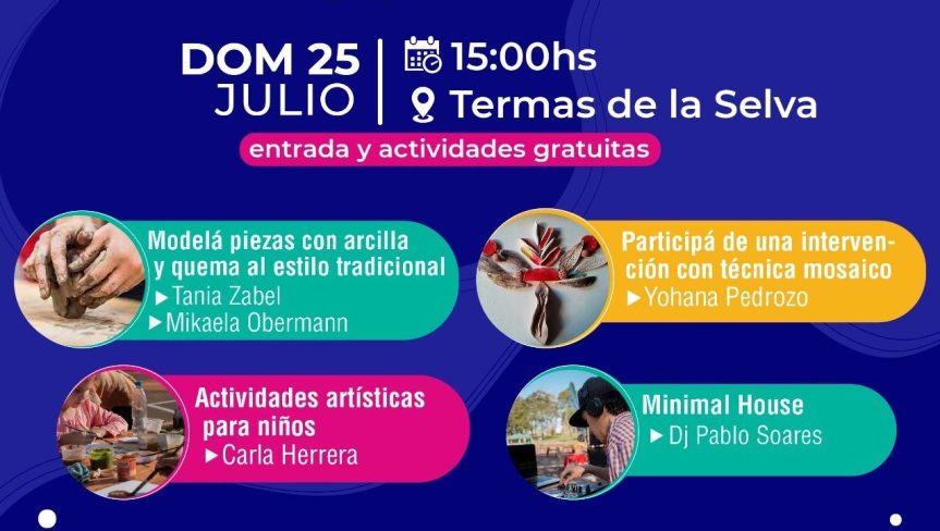El Parque Termal tendrá acceso gratuito y abrirá sus puertas de viernes a domingos de 11 a 17hs. Este domingo a partir de las 15hs realizarán modelado de piezas con arcilla y quemas de piezas al estilo tradicional, habrá actividades artísticas para niños, intervención con técnica mosaico y dj de minimal house en vivo.