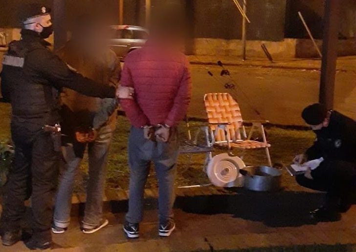 De inmediato la patrulla se constituyó al lugar e interceptaron a los mismos, estos llevaban consigo dos sillones plegables, una olla de aluminio y una tapa de lavarropas.