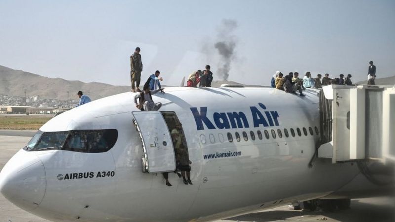 Estados Unidos y otros países intentaban evacuar al personal de sus embajadas y muchos afganos aterrorizados también trataban de abandonar la capital.