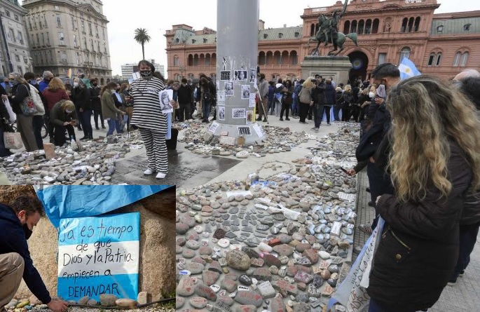 “Ellos son los responsables, son los que tienen que administrar todo lo que pasa en el país. Son el Poder Ejecutivo y lo que han ejecutado es pésimo”, señaló una mujer que se acercó a la Plaza de Mayo para depositar su piedra frente a la Casa Rosada.