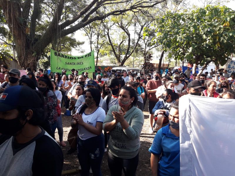 Este jueves por la mañana, varias organizaciones sociales realizan un acampe y protesta en Posadas. Exigen respuestas de la Ministra Benilda Dammer para la reactivación de la comida de las Cocinas Centralizadas y los módulos alimenticios.