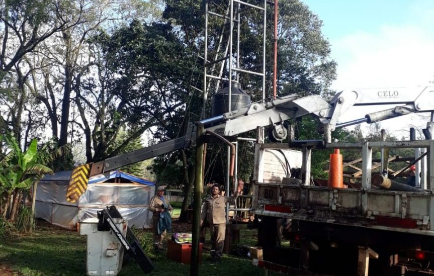 Personal del sector de Agua Potable se encuentra colaborando con los trabajos de reposición de la bomba del pozo perforado del Bº V. Kleiven, la cual resultó quemada anoche a causa de las fuertes descargas atmosféricas que se registraron durante la tormenta.