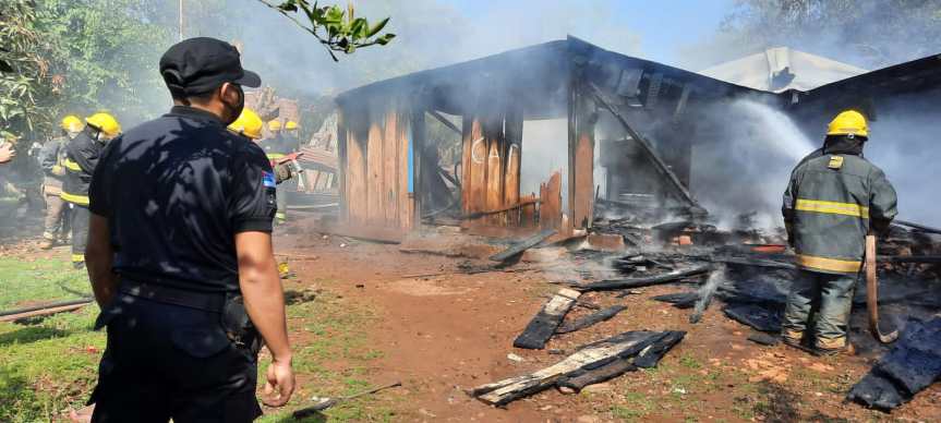 El incendio se provocó el sábado a las 11 hs, en el barrio Unido, donde efectivos de la Comisaría local y Bomberos Voluntarios de Cerro Azul sofocaron las llamas de una vivienda de madera integrada por una mujer de 31 años y sus tres hijos de 4,11 y 13.