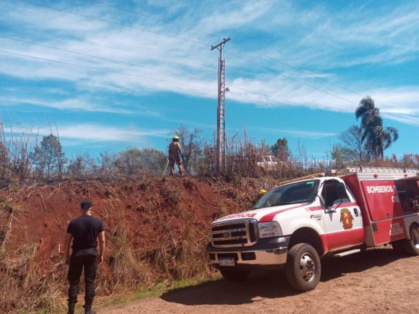 Esta tarde en Campo Ramón, se produjo un incendio en una zona de malezas en el barrio Azul donde intervinieron efectivos de la Comisaría Local, Bomberos Voluntarios de Villa Bonita de la división Bomberos de la Unidad Regional II.