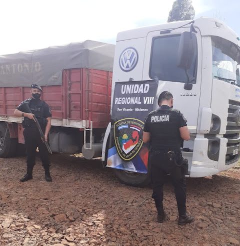 Los integrantes del Comando Radioeléctrico de San Vicente se hallaban apostados sobre la ruta, cuando observaron a los vehículos de gran porte ingresar a una senda alternativa para desviar el retén policial, actitud que llamó la atención de los uniformados.