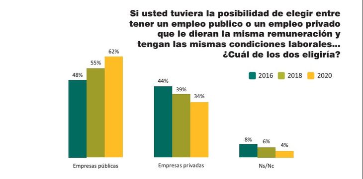 En 2018 las marcas mostraban que la predilección por el trabajo del Estado aumentaba al 55%, mientras que por el privado se reducía al 39%.