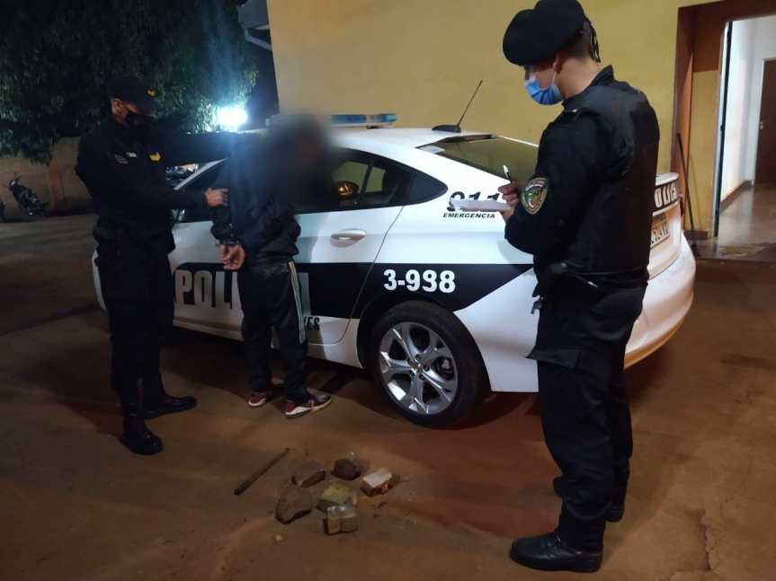 Minutos más tarde, tras oponer tenaz y resistencia e intentar agredir a los uniformados fue detenido. Además, incautaron un machete y piedras.
