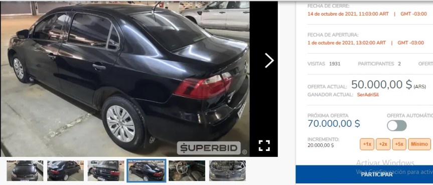 La fecha de apertura de la subasta comenzó el 1° de octubre y tiene como día de cierre el próximo jueves 14 y los vehículos publicados son 9 en total.