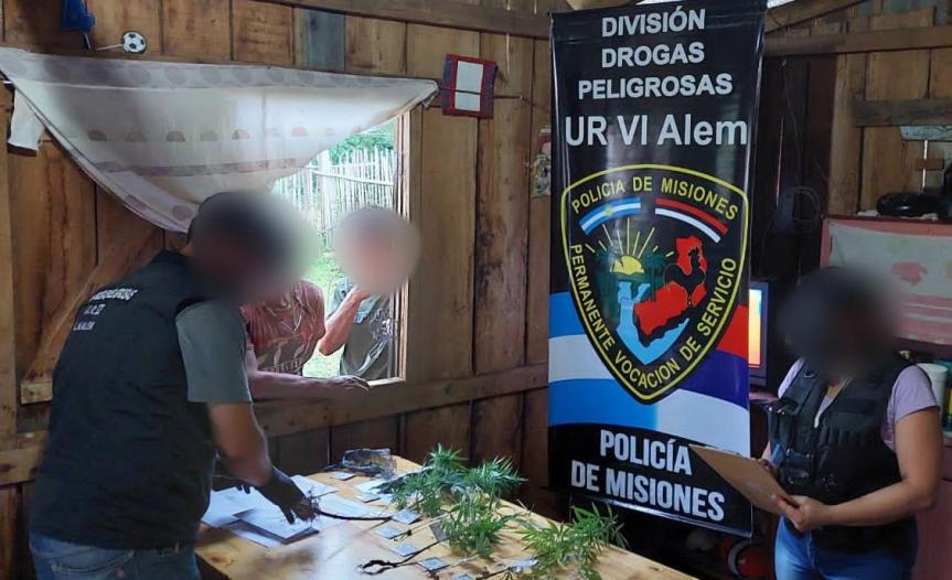 A través de diversas averiguaciones por el vecindario, los sabuesos establecieron que un jovencito de 17 años no sería ajeno al hecho. Por orden del Juzgado de Instrucción Nº 5 de Alem que interviene en la causa, los uniformados allanaron el inmueble, donde demoraron al sospechoso e incautaron los artefactos buscados. Como así también, en la parte posterior de la casa, hallaron 9 plantines de cannabis sativa y 11 tallos de la misma planta que luego fueron examinados por los especialistas antinarcóticos.