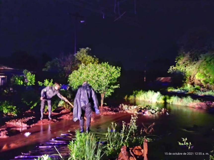 Por otro lado, en el segundo departamento, el personal de la Comisaría local asistió a cuatro familias del barrio El Palomar que se vieron afectadas por la acumulación de agua, debido a que una alcantarilla se taponeó totalmente.