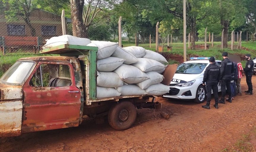 Fue así que, en cercanías de una pista de aterrizaje, interceptaron una camioneta Ford F-100 cargada con bolsas de materia prima para la infusión y a 3 personas cambiando los neumáticos, quienes al notar a los policías intentaron huir a pie, pero no llegaron muy lejos ya que fueron aprehendidos. Minutos después, en un yerbal de la zona hallaron ocultas entre las hojas, otras 46 bolsas del producto.