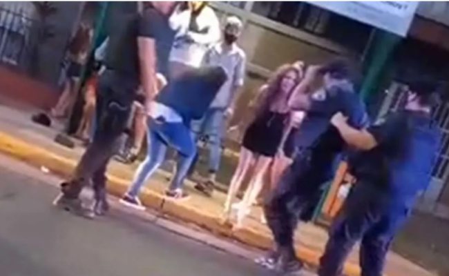 La joven explicó que «en la parada que yo estaba nadie estaba peleando. En la avenida Uruguay estaban peleando los dos chicos. Llegaron los policías, y ellos bajaron así pesados, a una chica la arrastraron por el piso, yo la levanté y ahí empezó el problema».