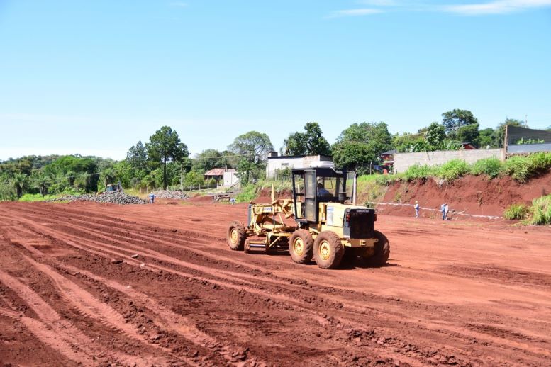 La jornada del lunes 8 significó la reactivación de los trabajos para la cancha de hockey que se realiza al costado del Ian Barney II. La empresa encargada de la obra comenzó con la nivelación del terreno.