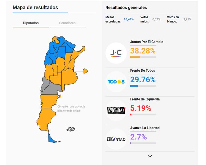 Según Infobae, con los primeros datos que se conocen el oficialismo logró mantenerse en Catamarca y Tucumán. Sin embargo, Juntos por el Cambio se impuso en el resto de las provincias. Es decir, el Frente de Todos habría perdido en seis provincias.