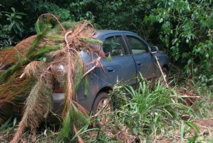 Los uniformados tomaron conocimiento de la situación a través del llamado anónimo de una persona a la dependencia, quien avisó que en observó en ese lugar un auto tapado con ramas de pino.