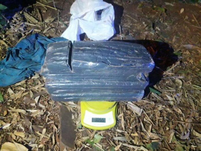 Los efectivos fueron solicitados por un vecino de la zona, quien a través de un llamado a la línea de emergencias 101 avisó que cuando realizaba limpieza de malezas en la parte lateral de la calle al costado de su casa, halló oculto entre los yuyos, una bolsa abierta con unos ladrillos prensados y que presumía que eran marihuana.