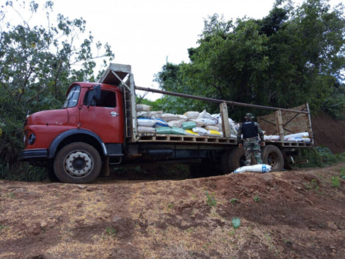Al aproximarse al lugar comprobaron que el conductor del vehículo estaba descargando 24 bolsas de maíz, de 50 kilogramos cada una, y cinco bidones de 20 litros de agroquímicos de industria nacional, sin su correspondiente aval aduanero.
